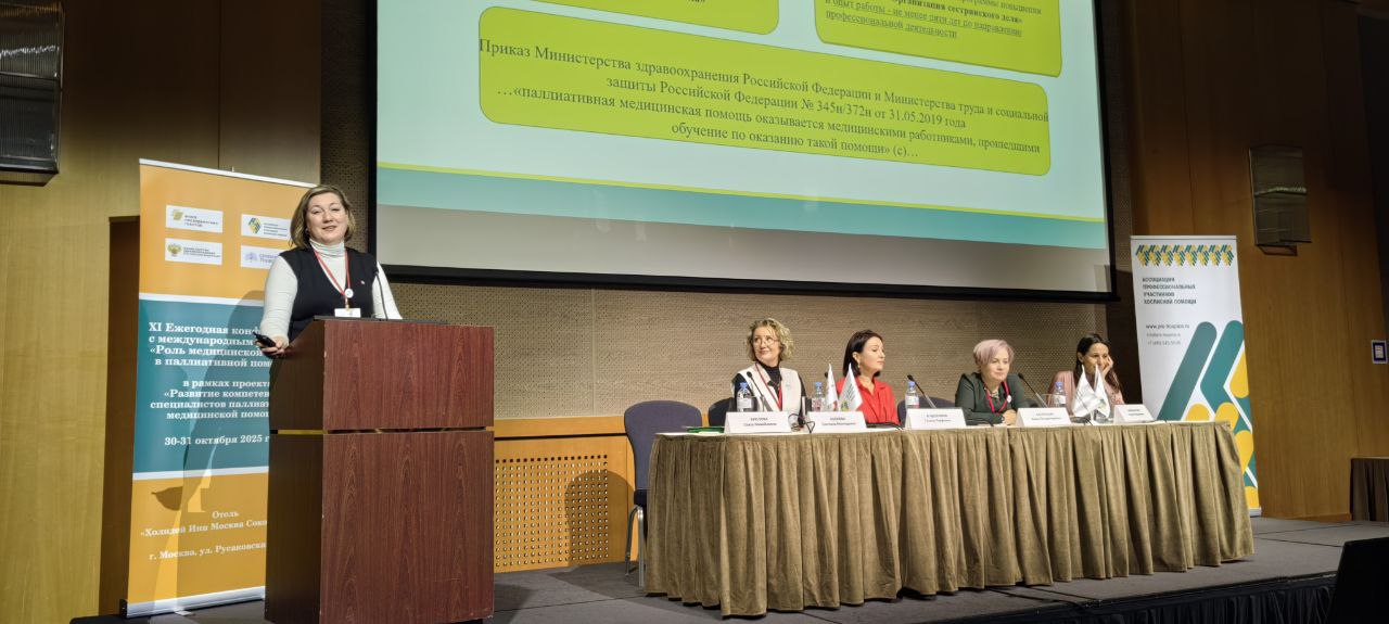 30 и 31 октября 2025 года состоялось крупнейшее в России образовательное мероприятие для младшего и среднего медицинского персонала, оказывающего помощь неизлечимо больным людям - XI Ежегодная конференция с международным участием «Роль медицинской сестры в паллиативной помощи» в рамках проекта «Развитие компетенций специалистов паллиативной медицинской помощи».